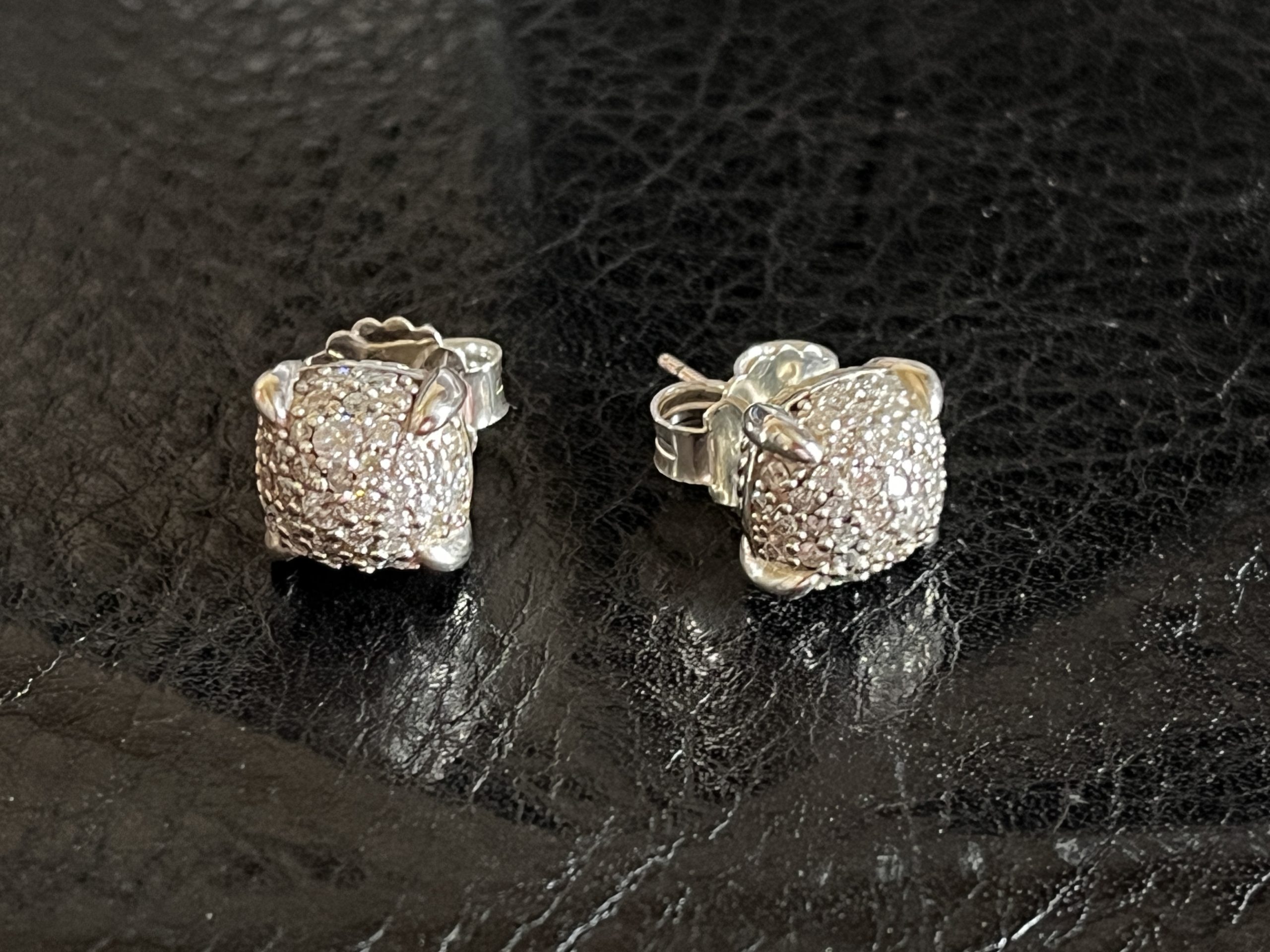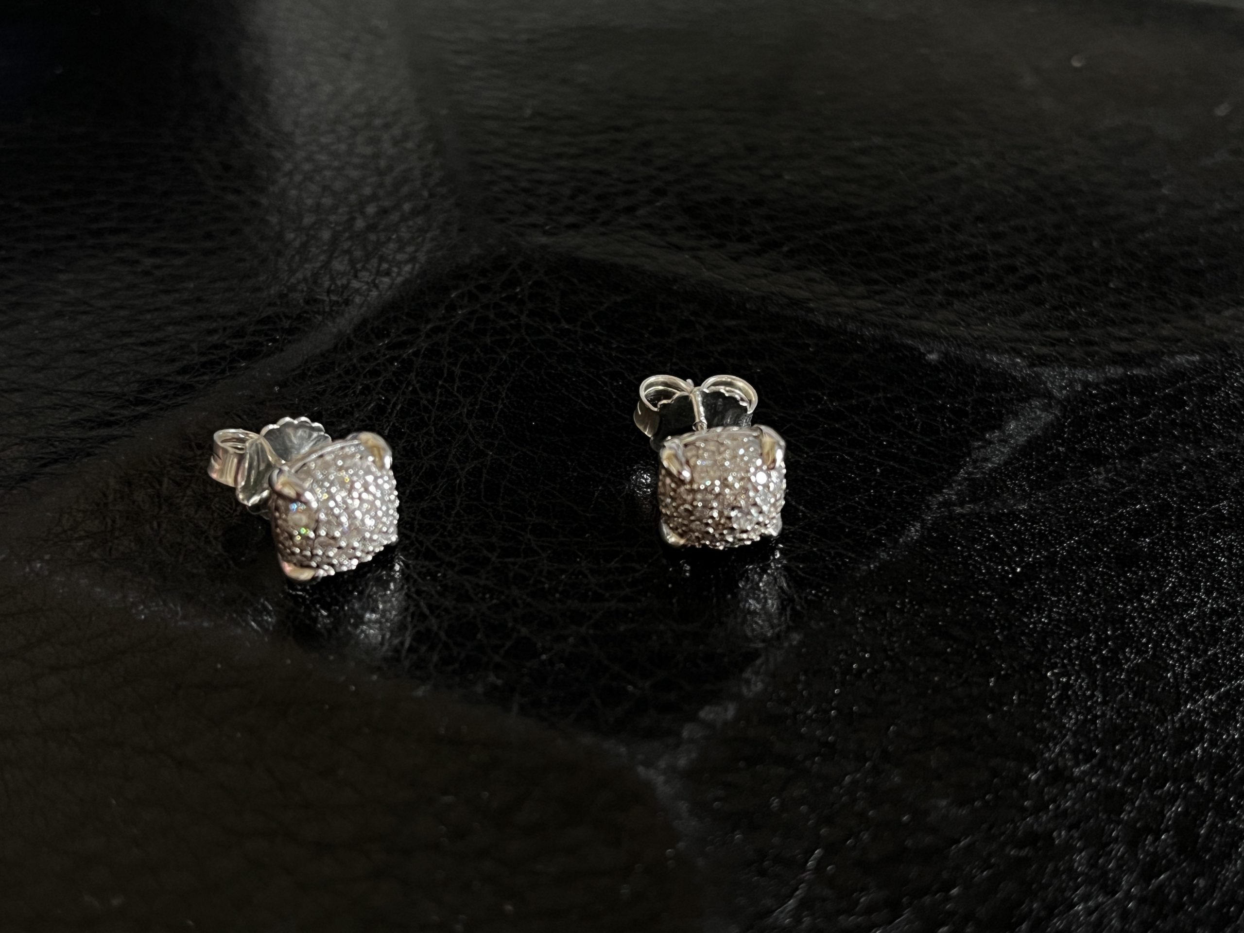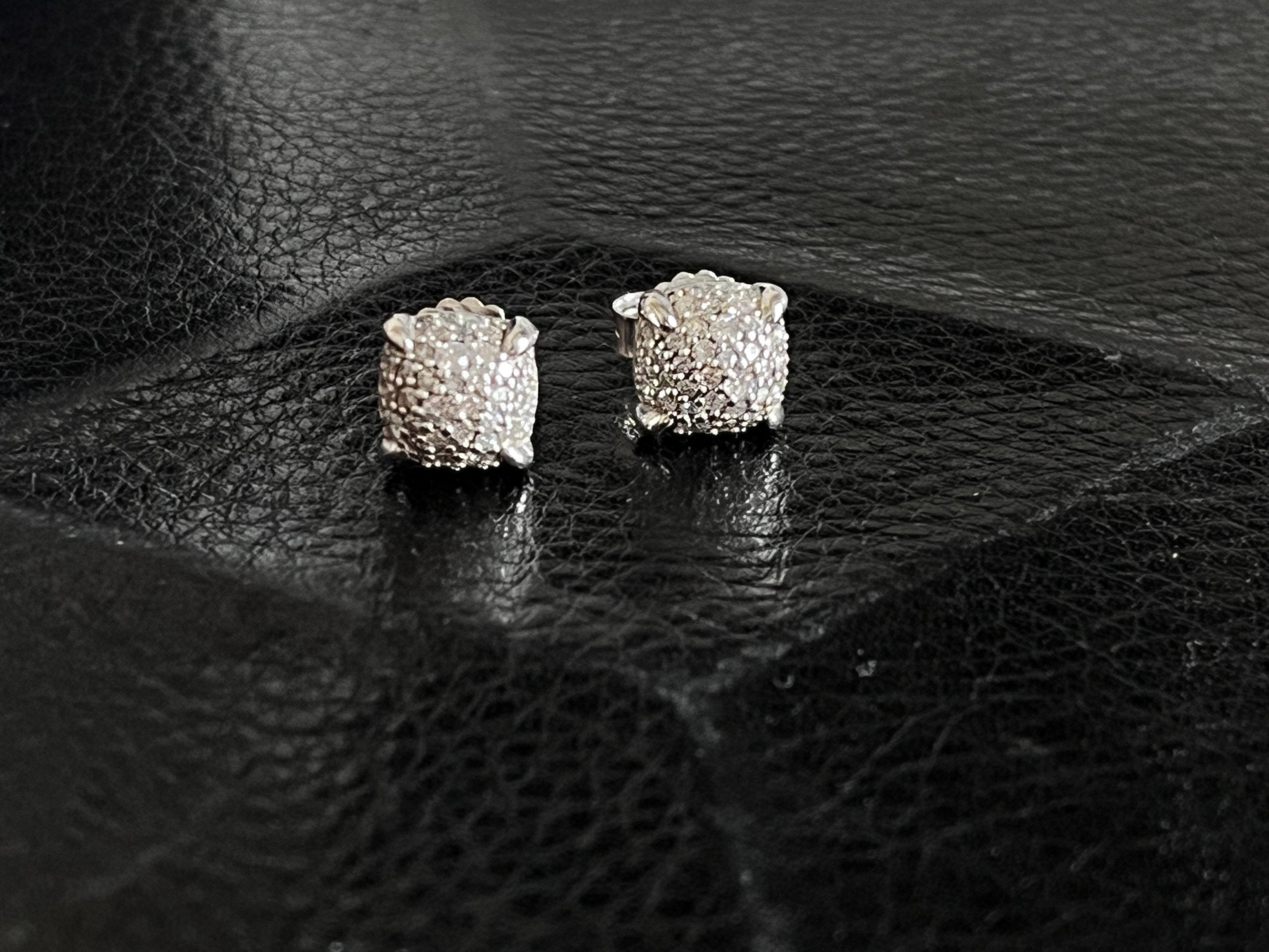 A timeless DY icon, the “Cushion Pavé” stud blends sculptural silverwork with a shimmering pavé-set surface. The signature rope-edged frame reinforces the house’s recognizable design language, while the compact silhouette delivers understated brilliance suited for both daily wear and evening styling.