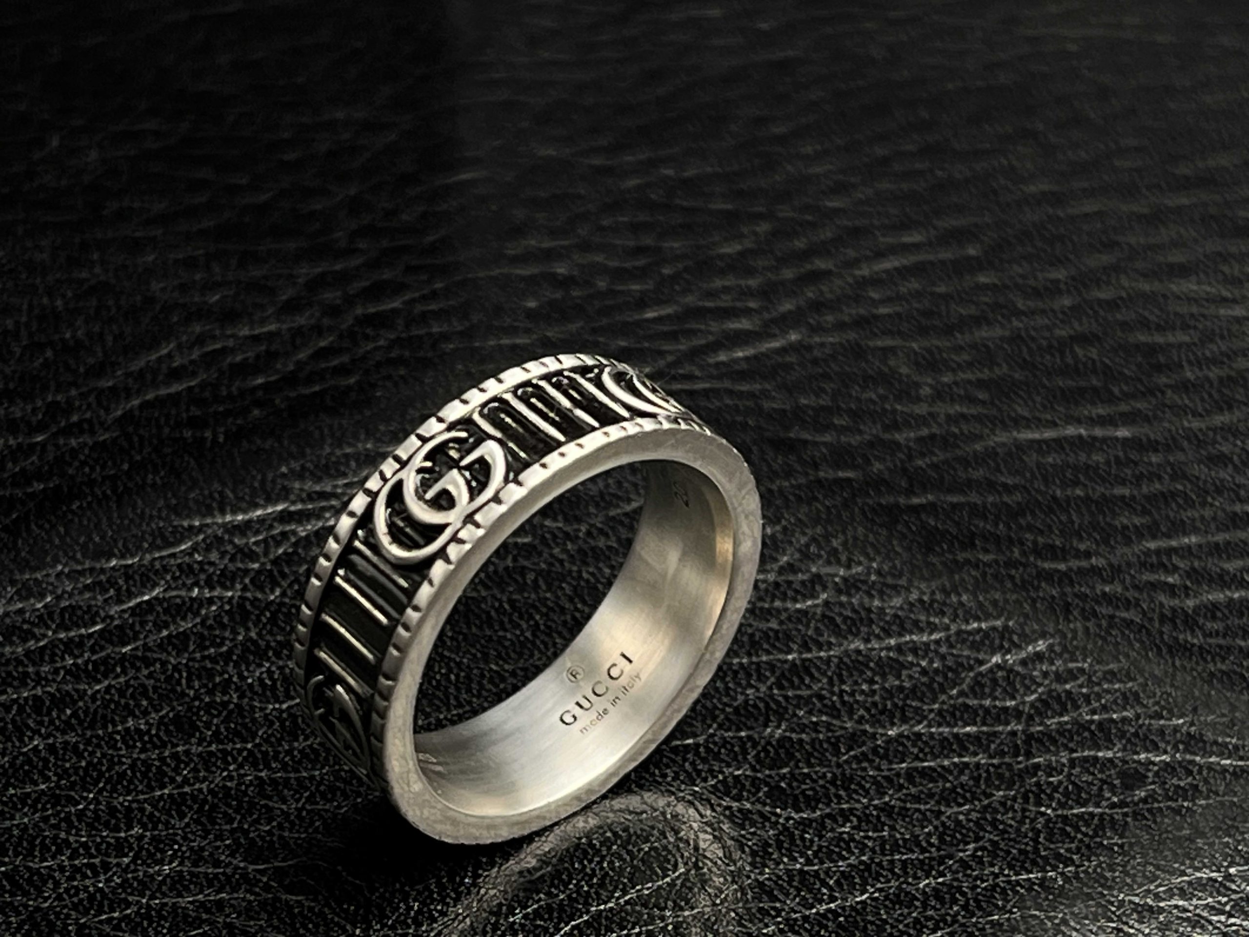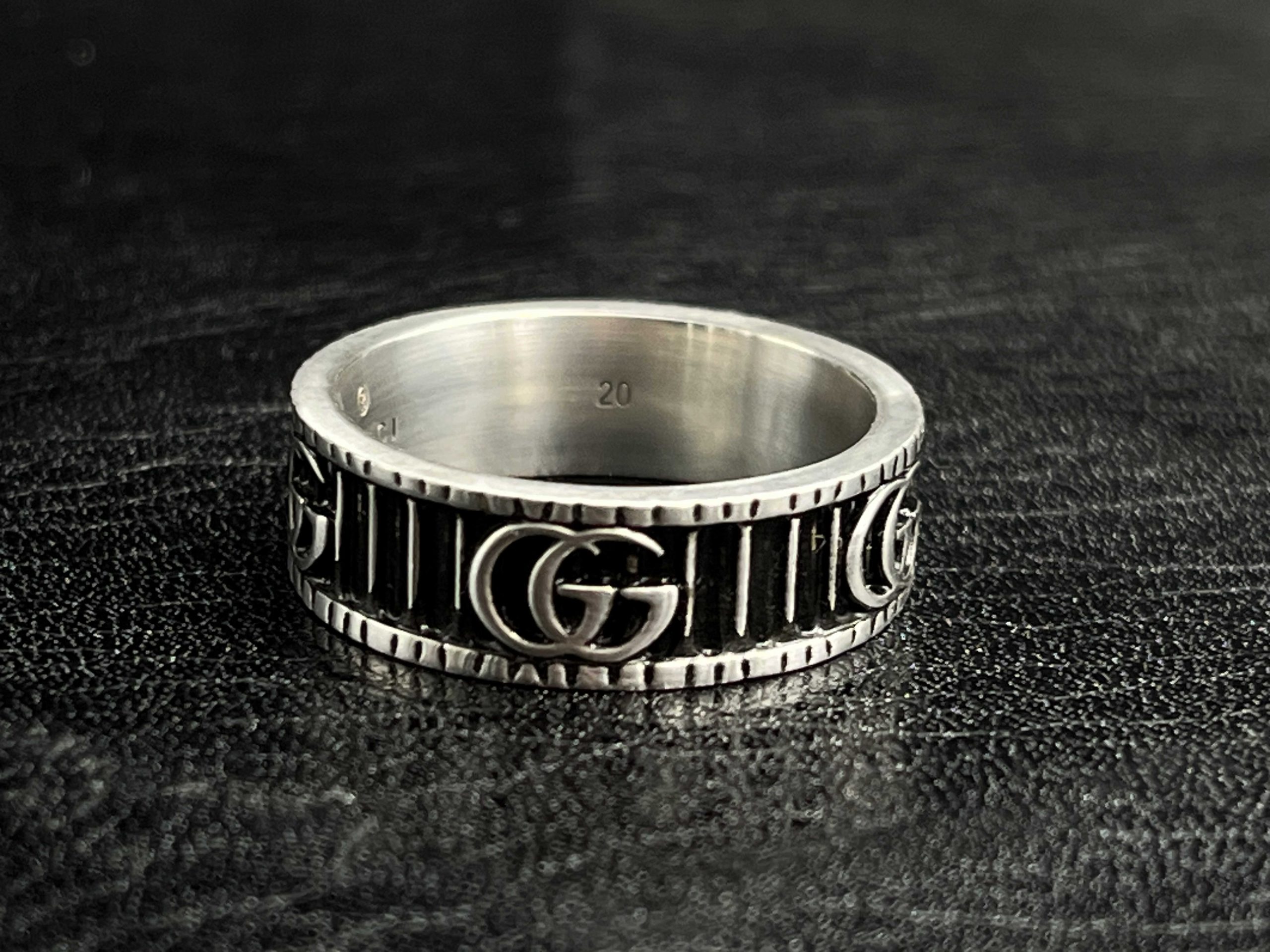 A sharp, ribbed GG statement band that brings structure and edge to any daily stack.