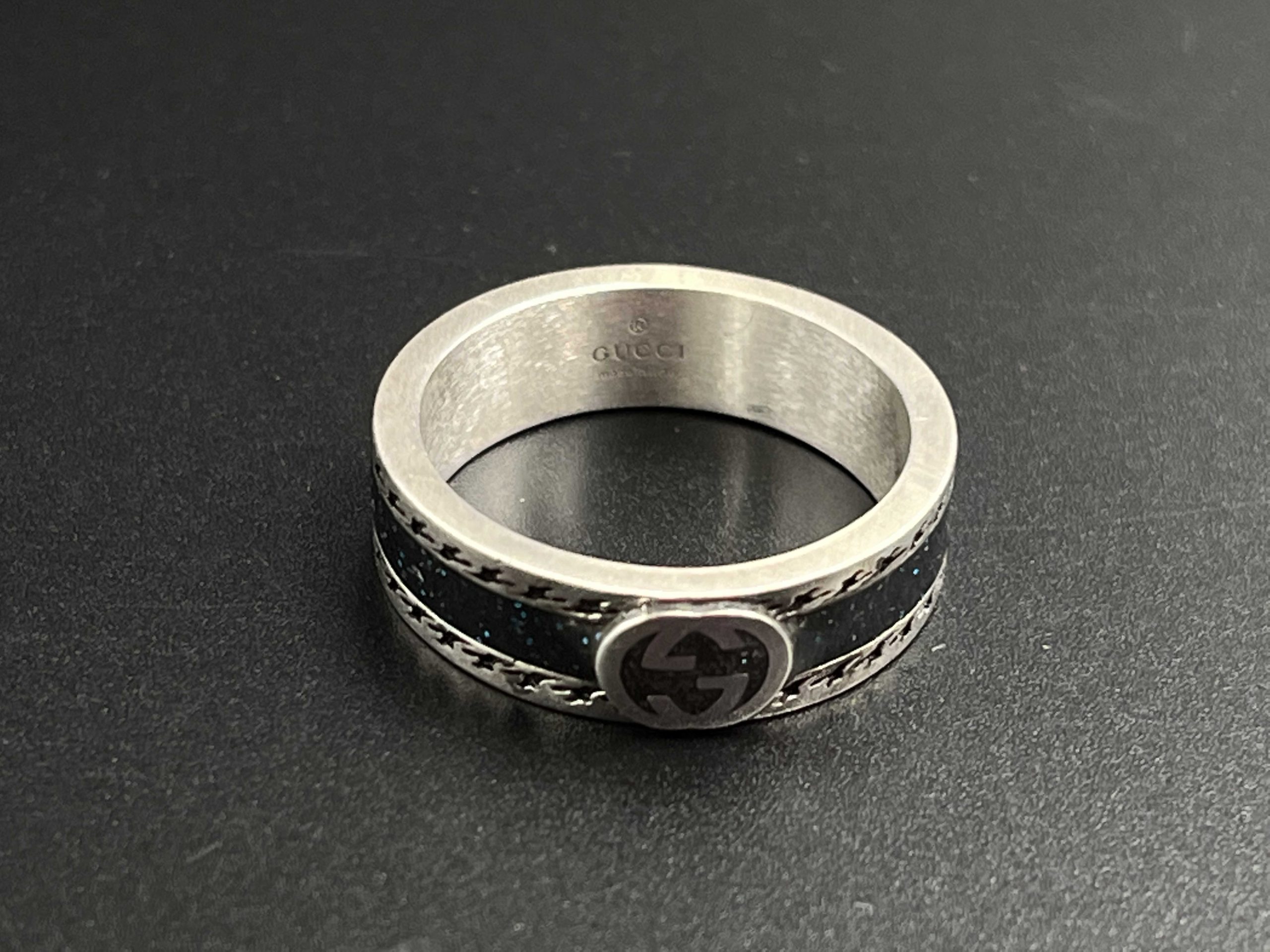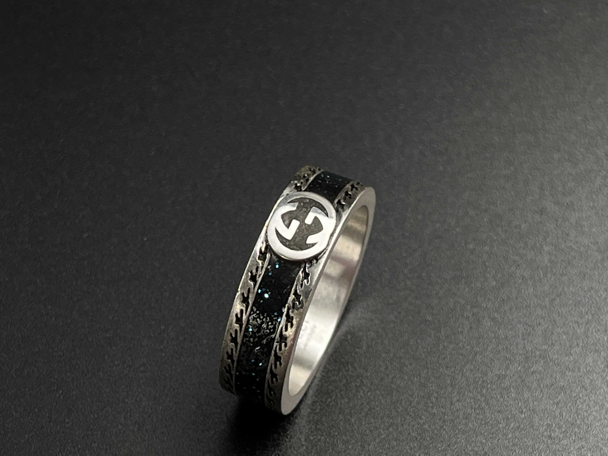 A sleek GG enamel band that blends minimalist color with timeless silver craftsmanship for an elevated everyday statement.