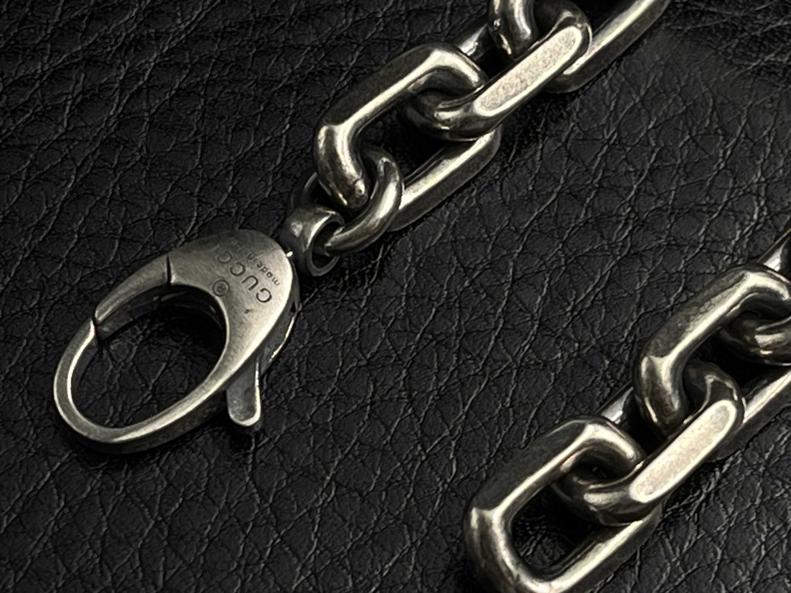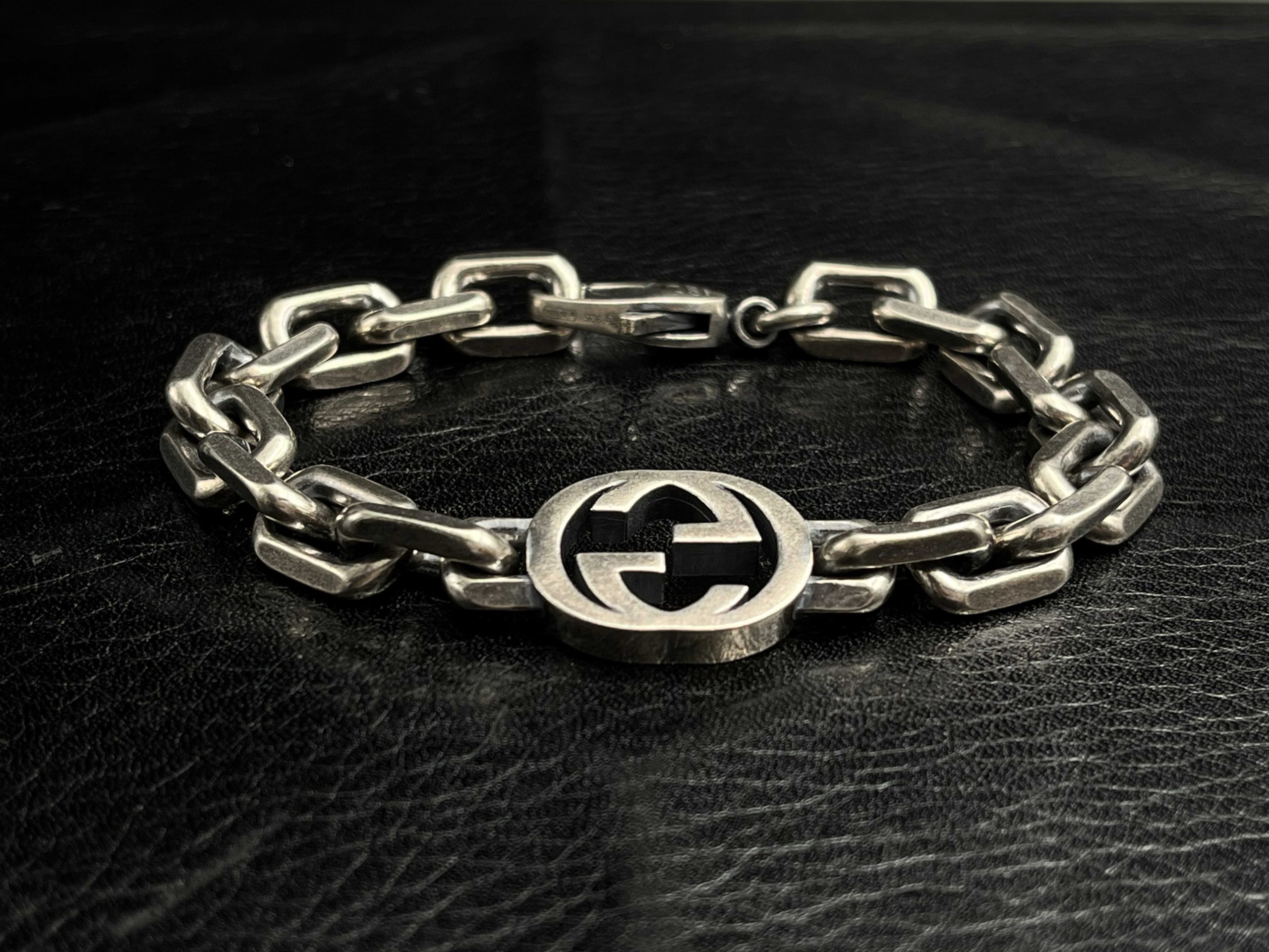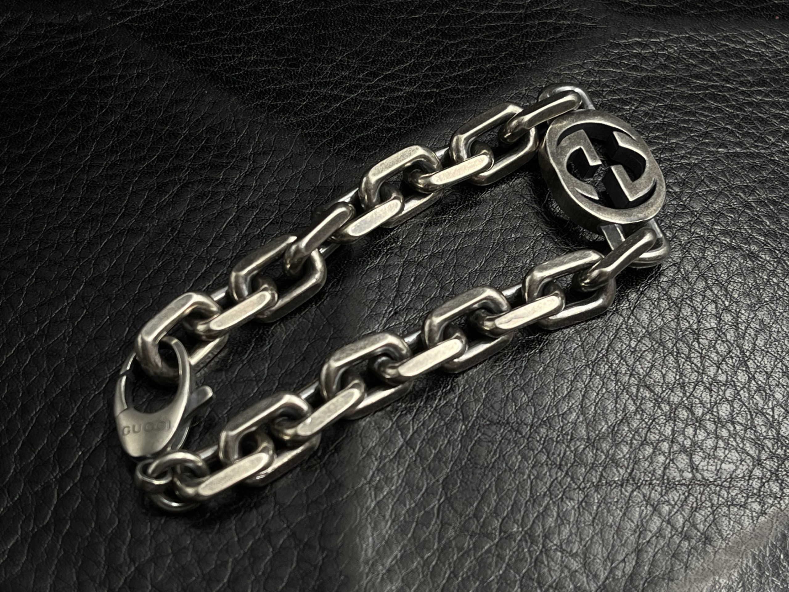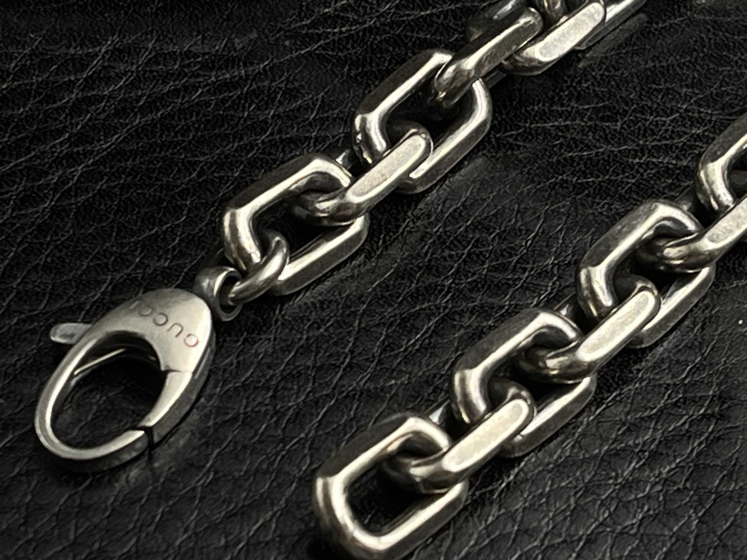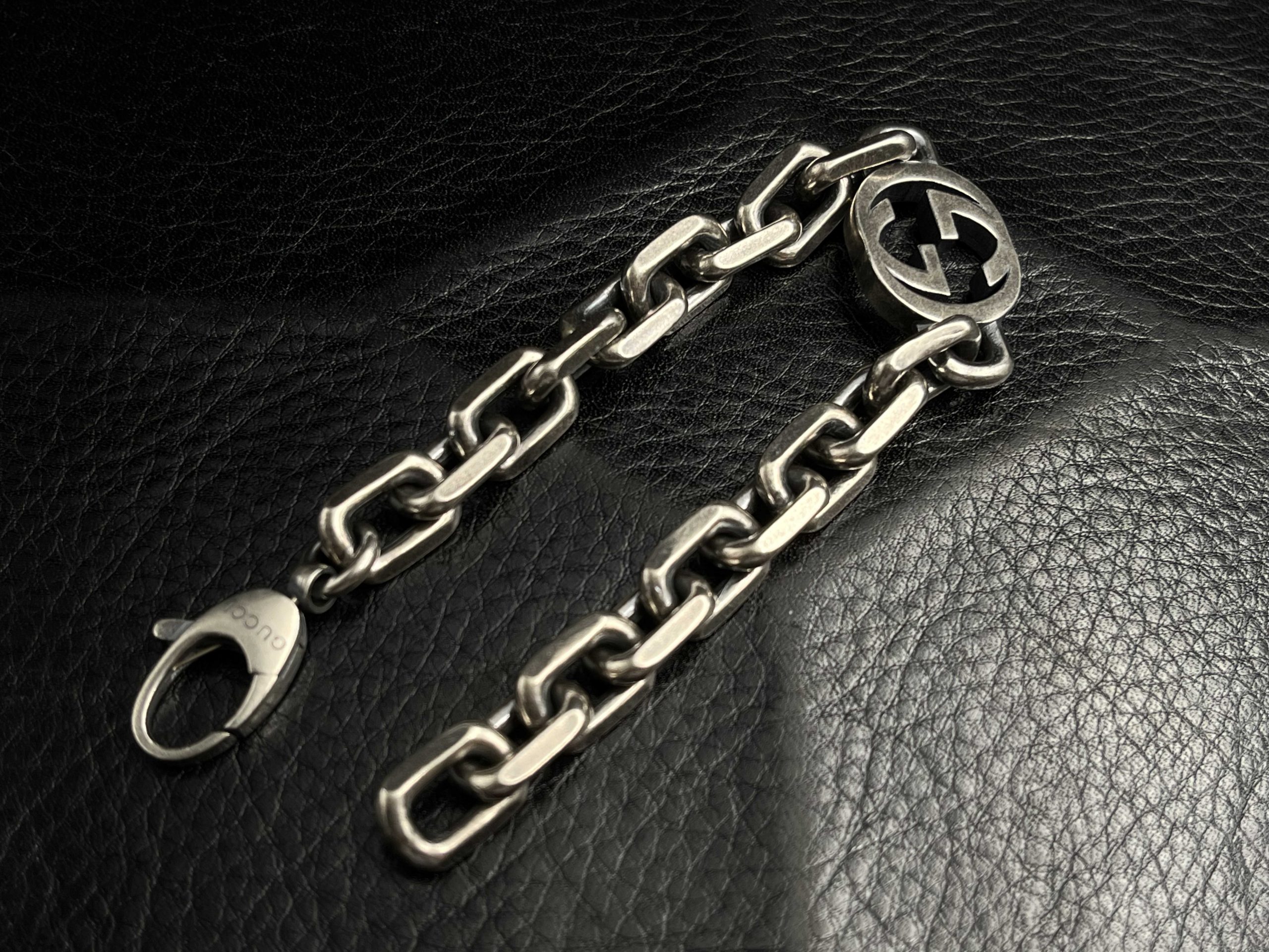 A structured GG chain defined by its Interlocking emblem and solid-silver presence.