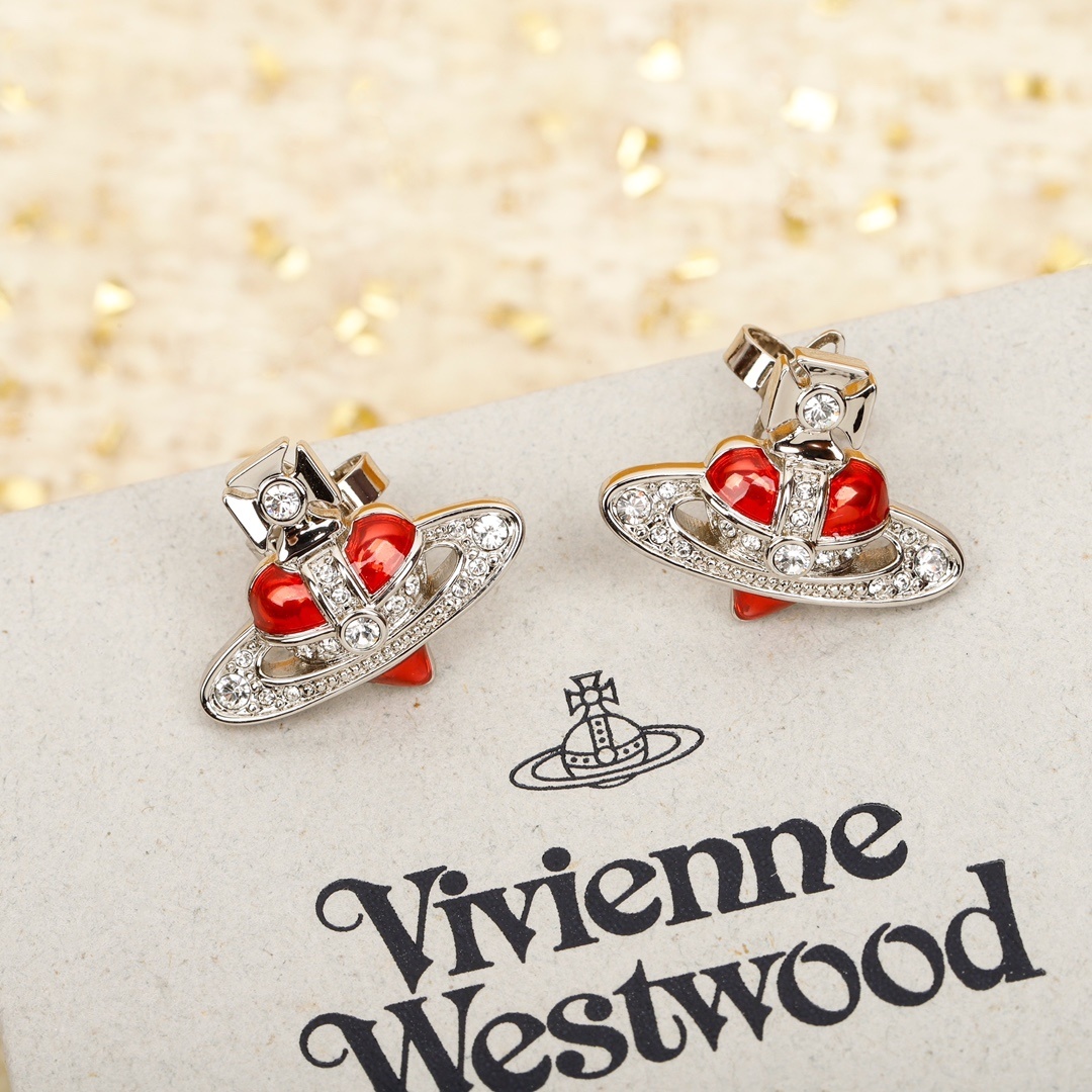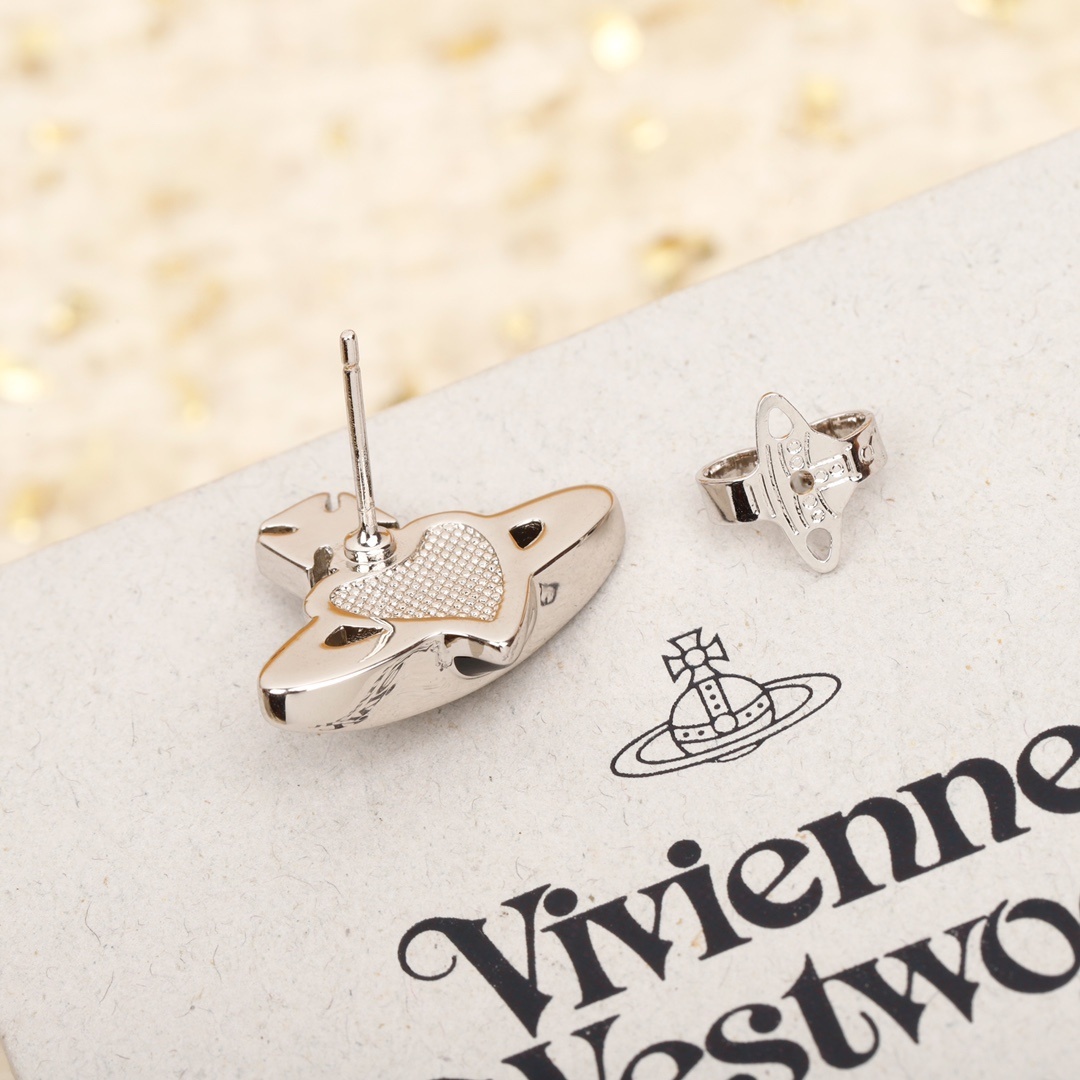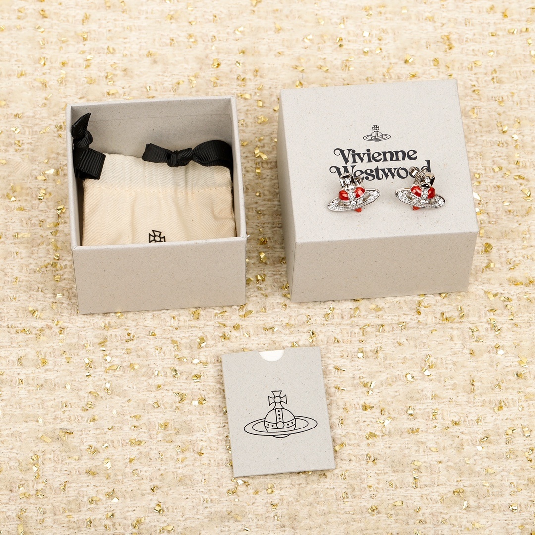 Each earring features the signature Orb form, accented by a polished heart centerpiece and surrounded by precisely set diamante stones that add subtle brilliance without overpowering the design. The balance between structure and softness gives the piece its distinct character — playful, rebellious, and unmistakably VW.