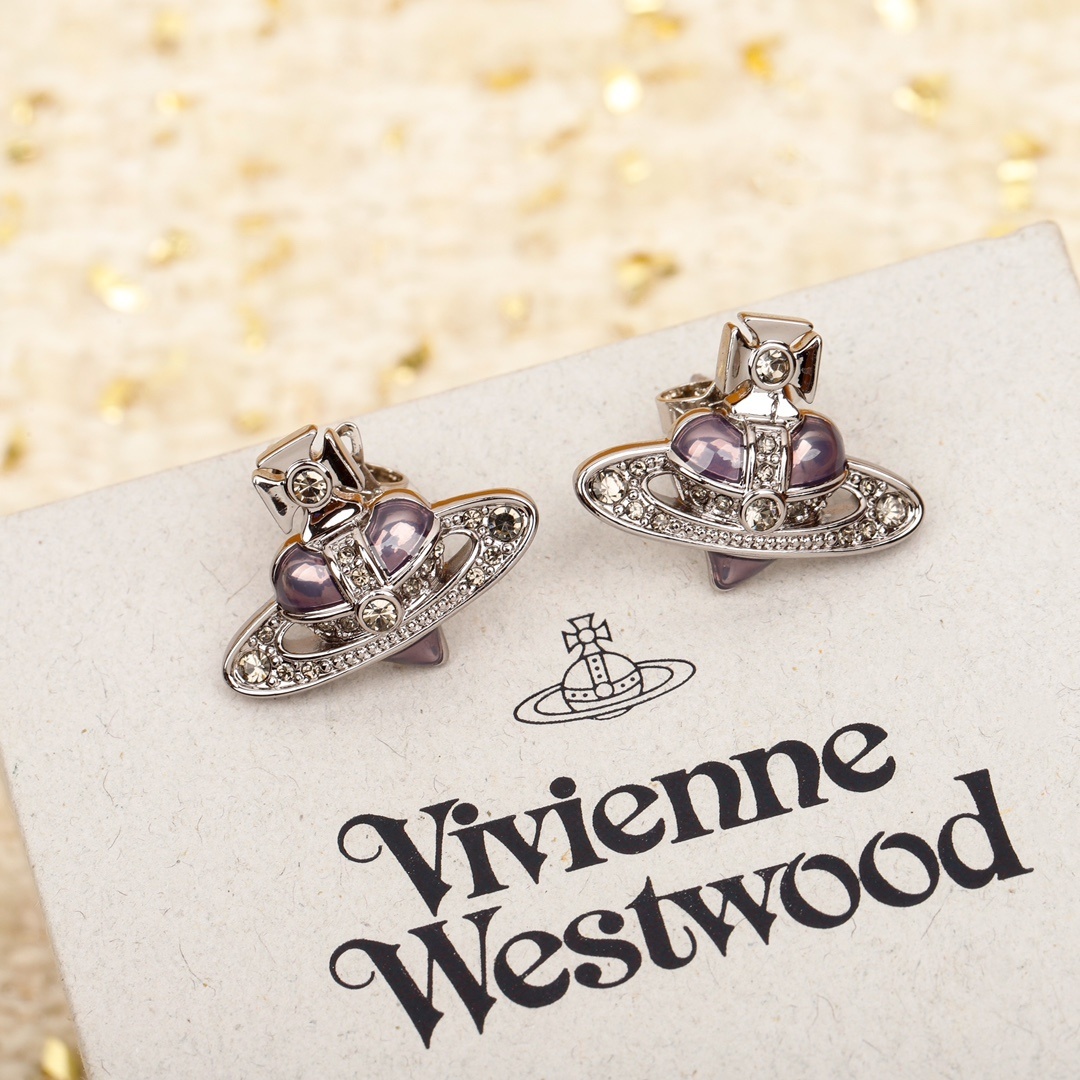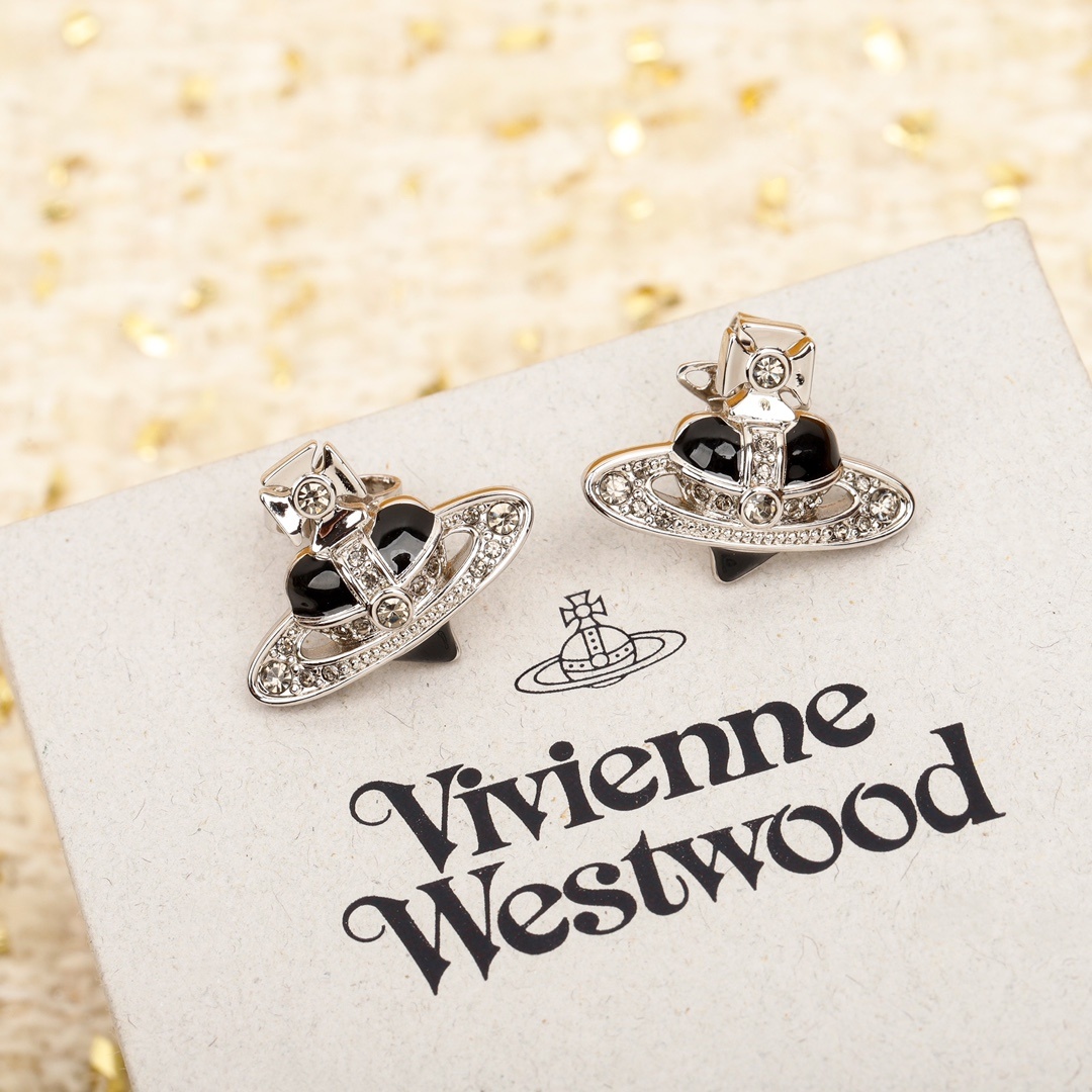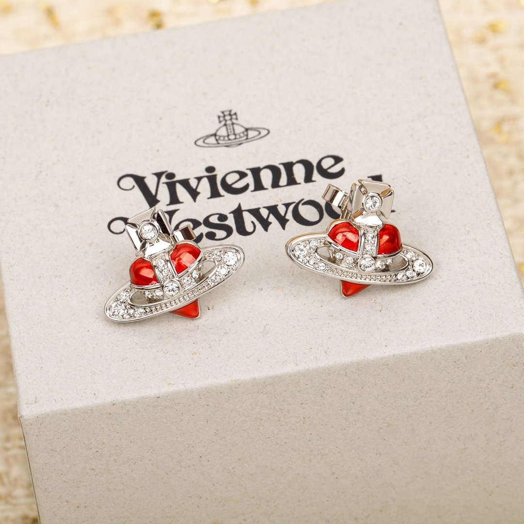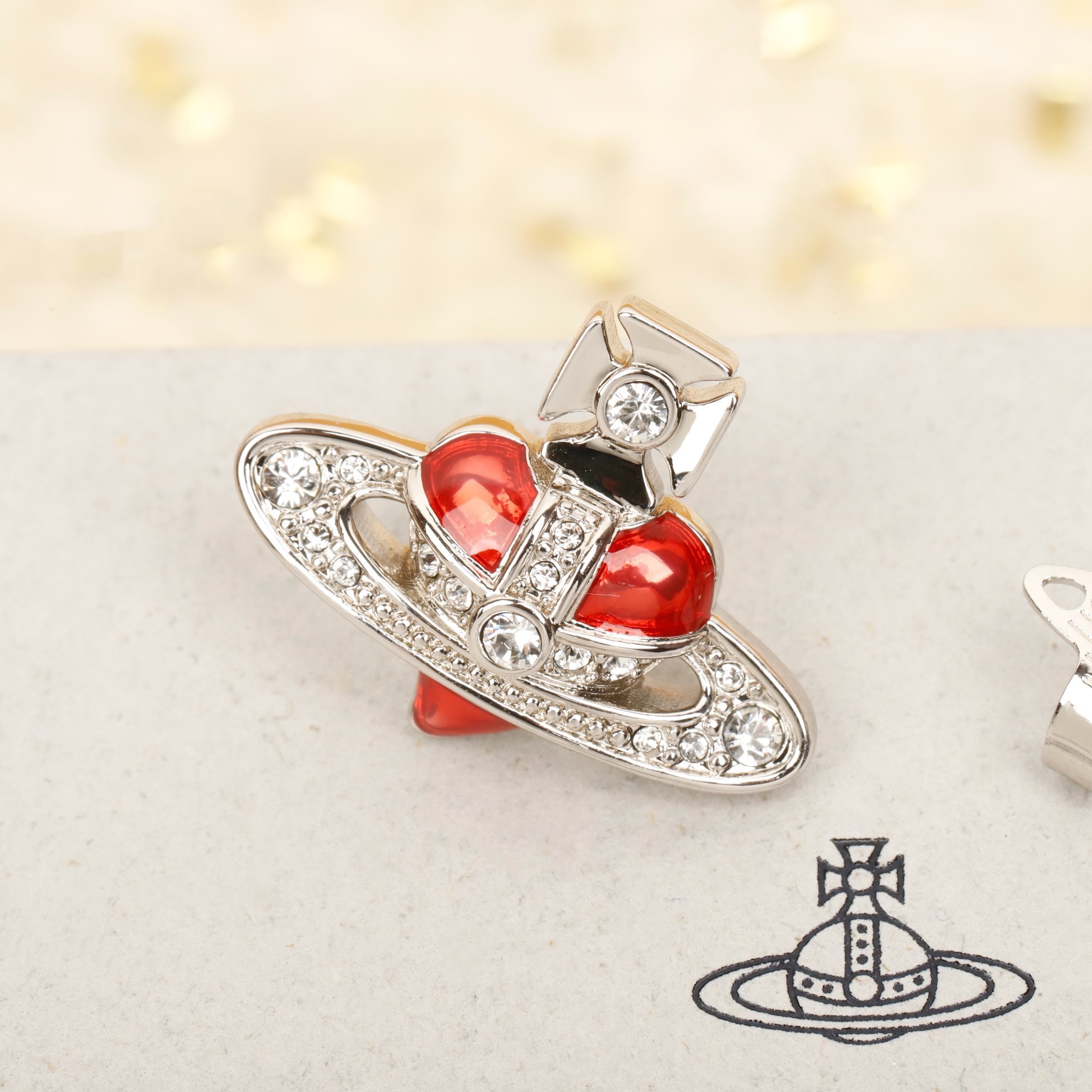 Each earring features the signature Orb form, accented by a polished heart centerpiece and surrounded by precisely set diamante stones that add subtle brilliance without overpowering the design. The balance between structure and softness gives the piece its distinct character — playful, rebellious, and unmistakably VW.
